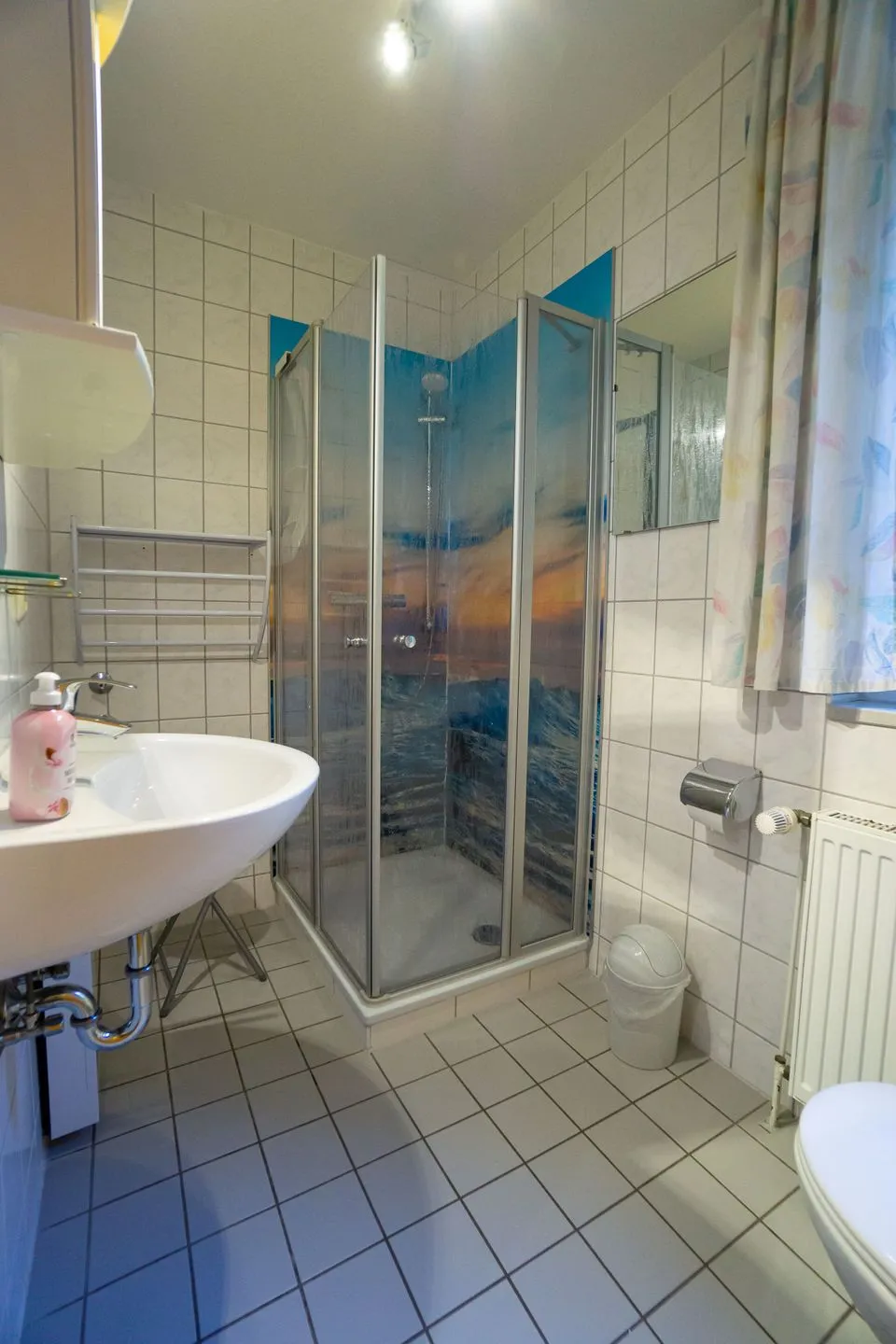 Das Badezimmer ist mit einer Dusche und einem WC ausgestattet und bietet Ihnen alles, was Sie für Ihre tägliche Körperpflege benötigen. Für unsere kleinen Gäste stellen wir gerne ein Kinderbett bereit.