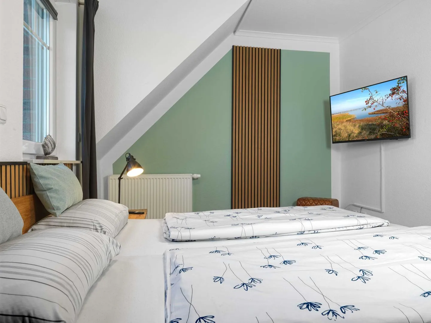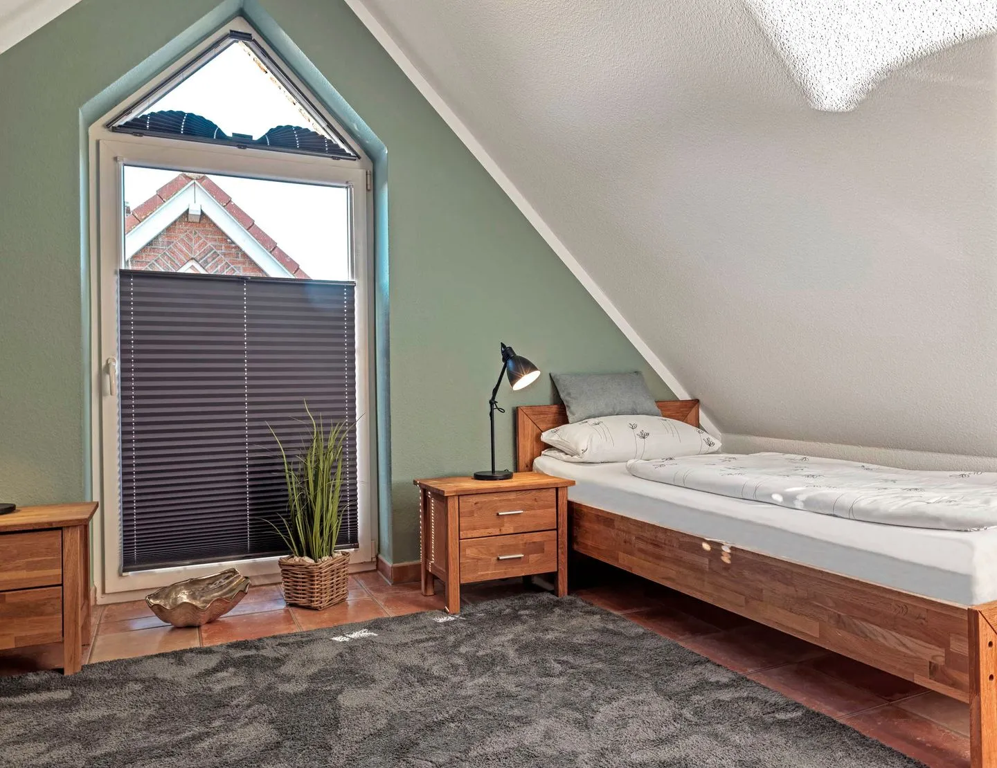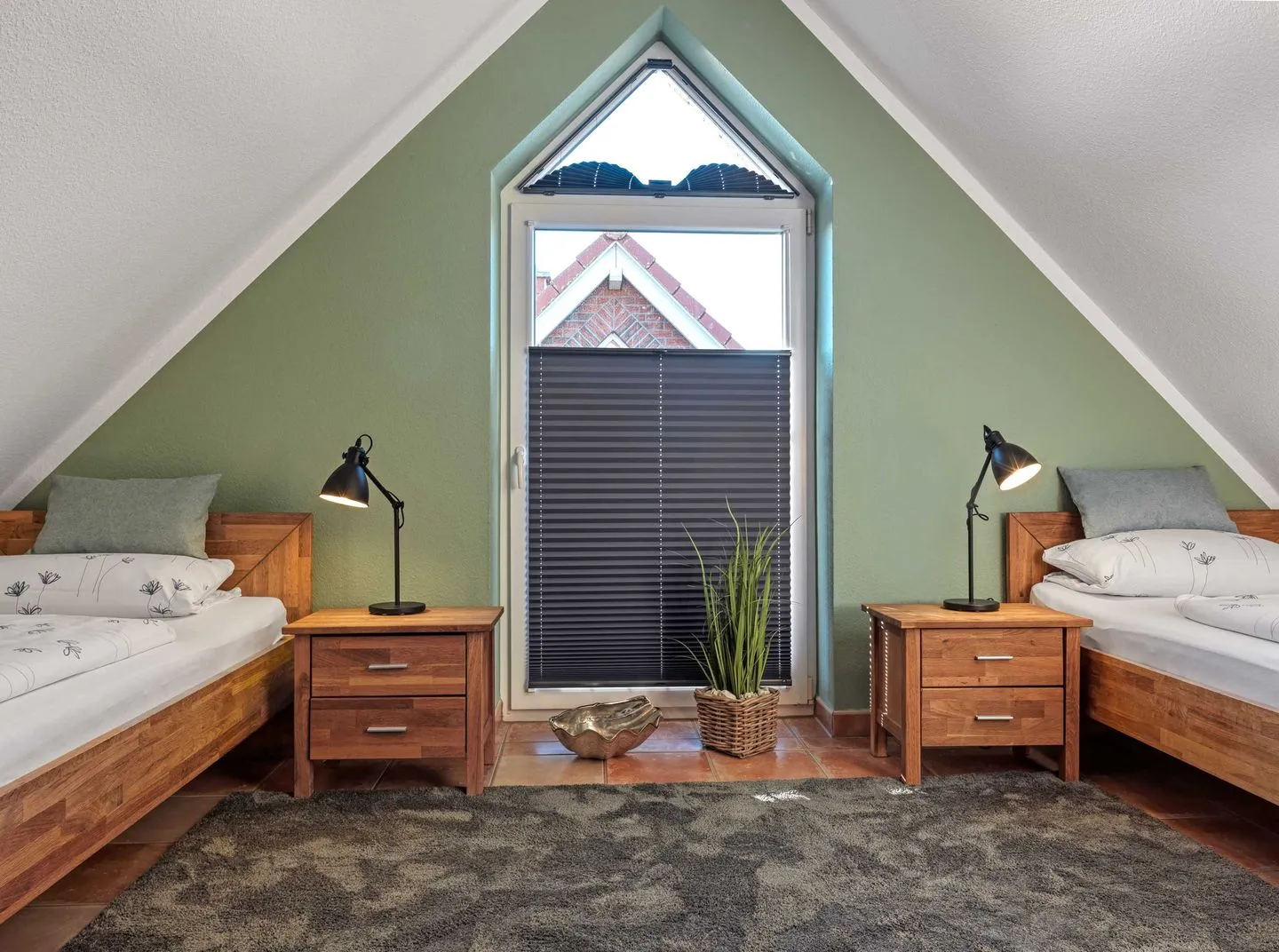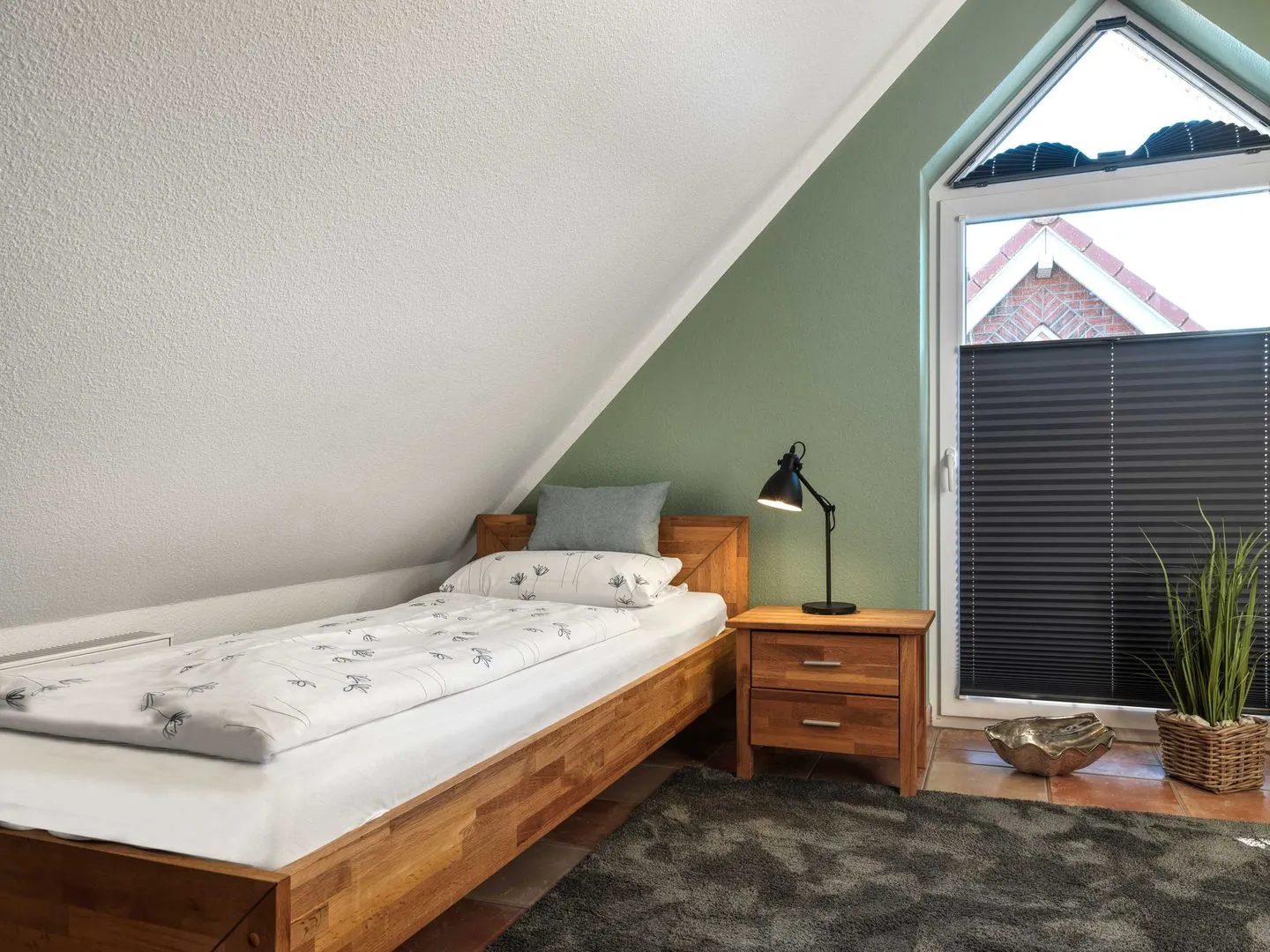 2 weitere Personen können im gemütlichen Dachgeschoß in 2 Einzelbetten unter Schrägen nächtigen.