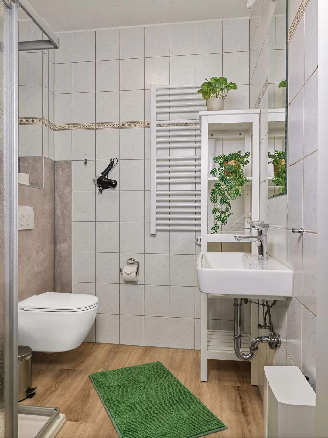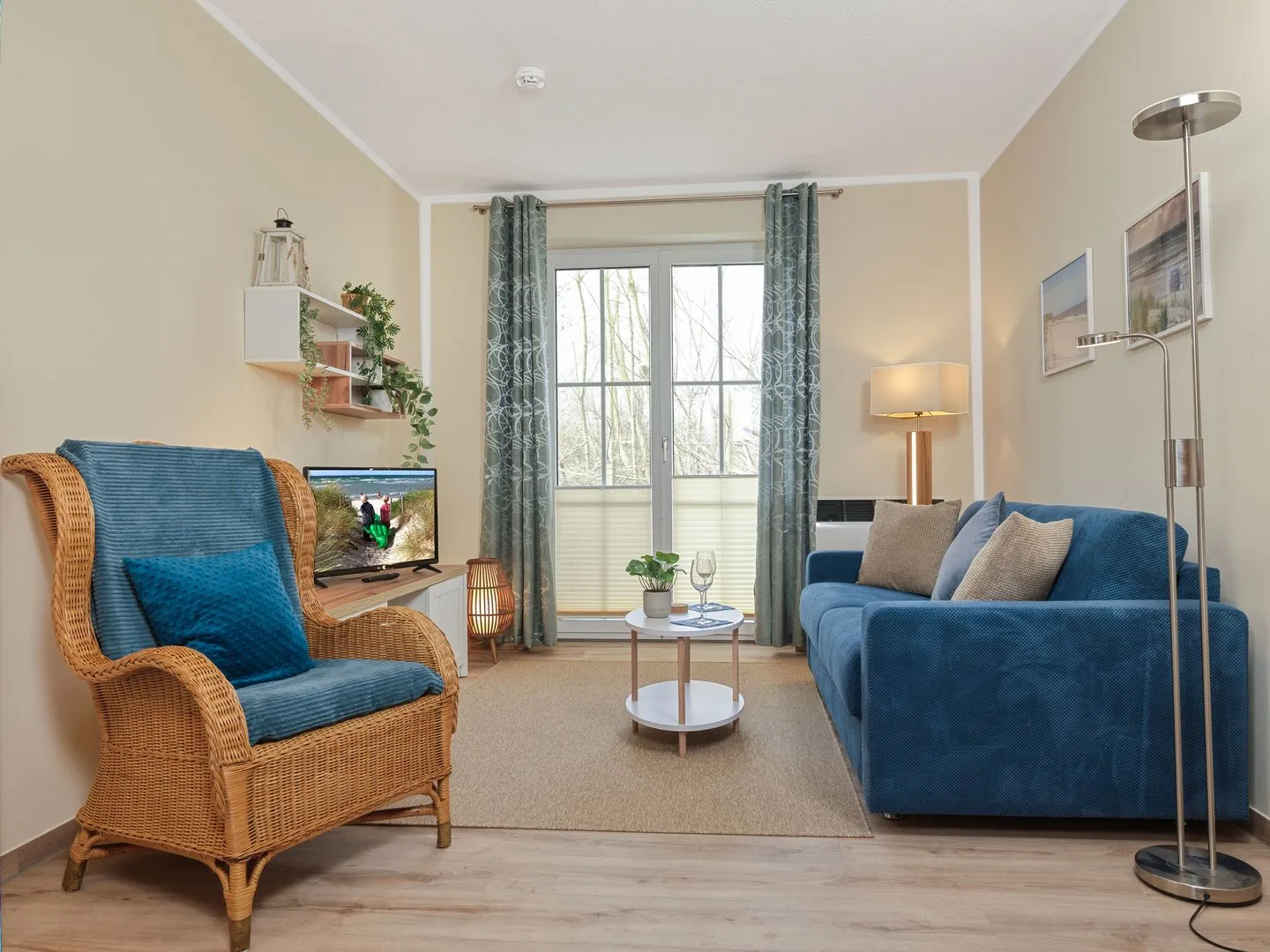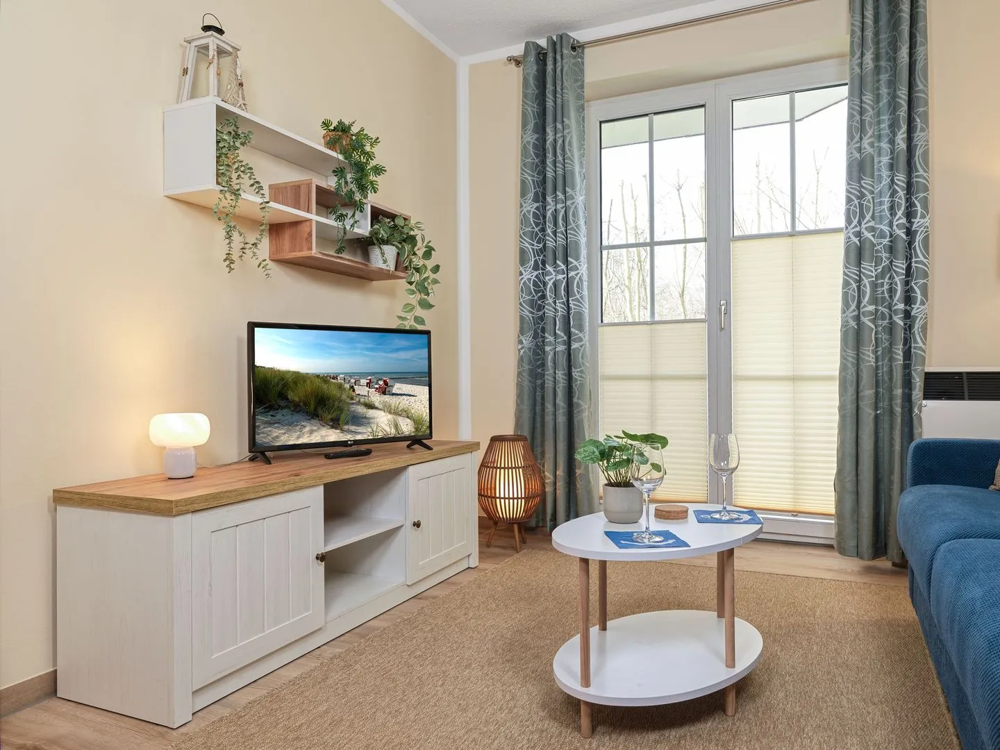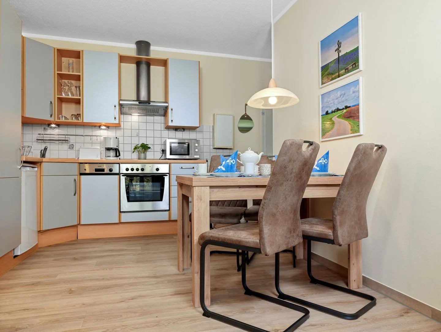 Bright living room with adjoining terrace where you can enjoy the sun in summer. In the living room there is also the well-equipped, open kitchen (dishwasher, stove with ceramic hob, oven, refrigerator), a dining area and a comfortable (sleeping) sofa for 1 additional person. The bedroom has a double bed and a large closet. The bathroom has a shower and a toilet.