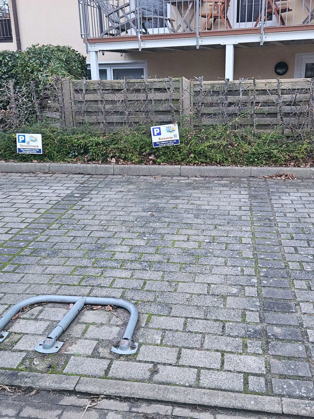 Ein Parkplatz zu jedem Objekt (eng geschnitten) befindet sich hinter dem Haus.