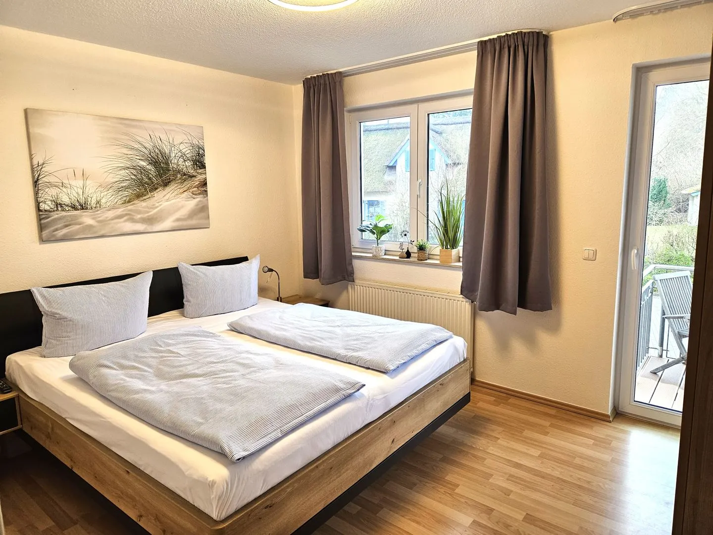 Holiday right on the beach of the Schwarzen Busch, from the apartment "Bernstein" you can hear the sound of the sea. The apartment is on the 1st floor, 63m² and offers enough space for 4 people. From the living room you have access to two balconies. One bedroom is equipped with a double bed, in the second bedroom there is a single bed with an extra bed (pull-out bed). The bathroom is equipped with shower and toilet.